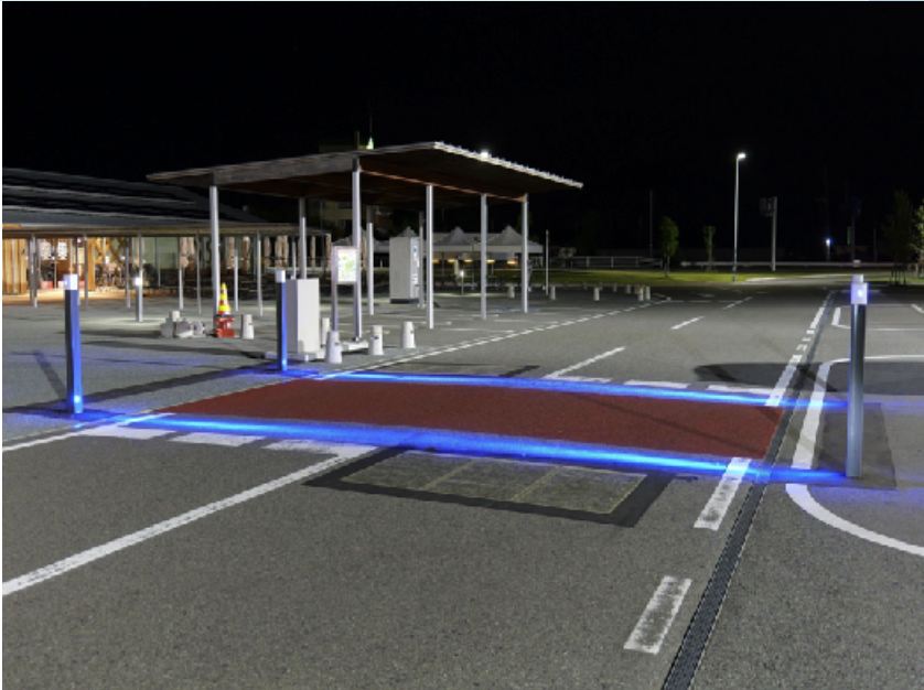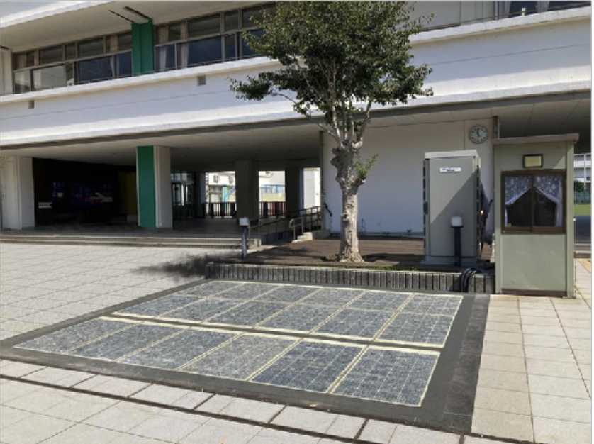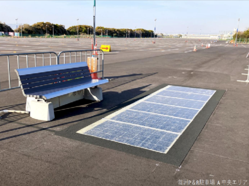 路面に設置するため周囲の景観を壊さず、路面としての機能を生かしたまま再生可能エネルギーの発電施設が設置できるため、空間を有効活用しながら脱炭素を目指した街づくりが可能です。また、暴風や塩害に強く、災害時の非常用電源として利用できるため、道の駅や都市公園等の防災拠点へも適しています。厚さ6mmのパネルを特殊な接着剤により路面に張り付けるため、大規模な工事を必要としません。