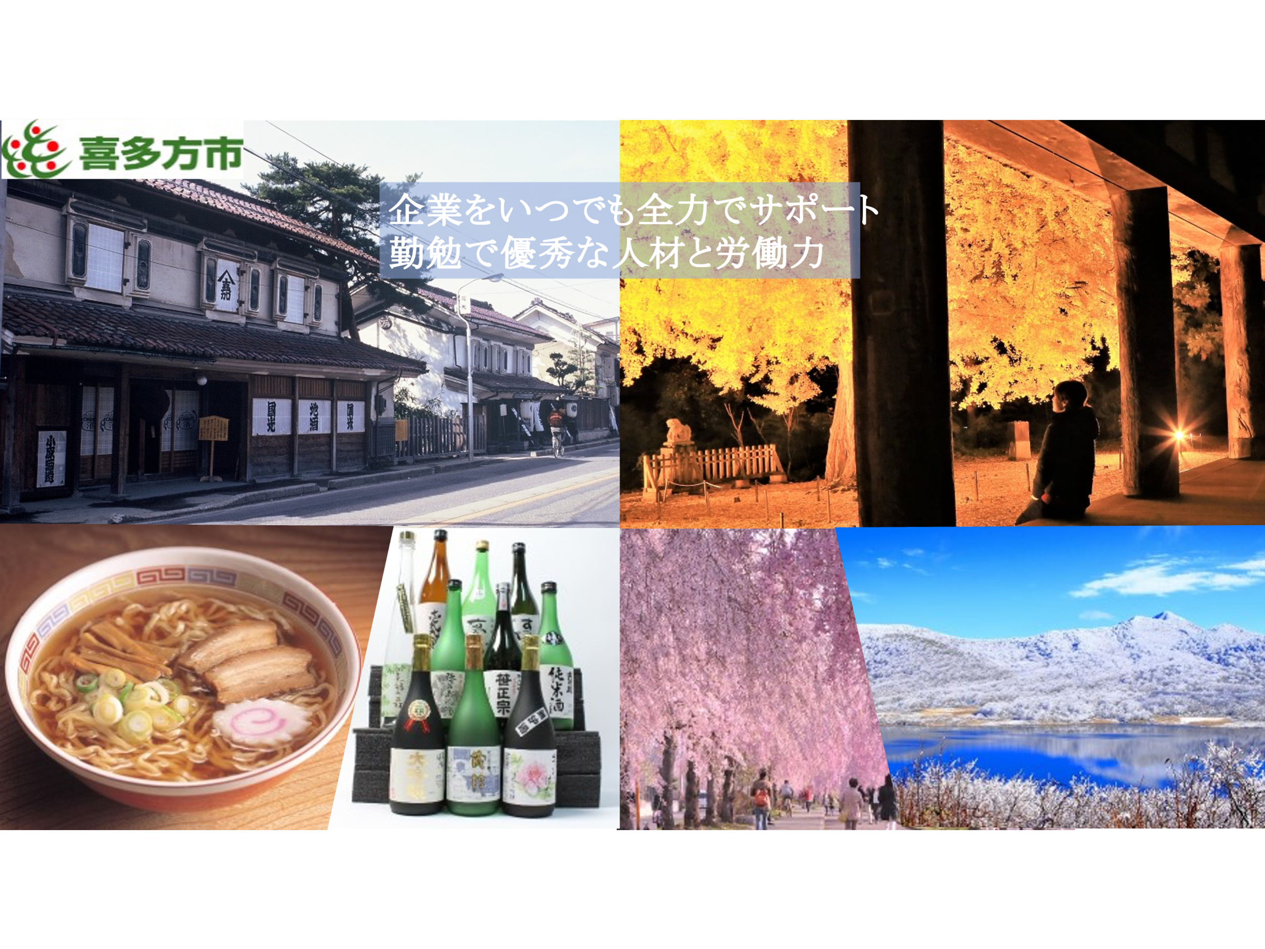 分譲中の喜多方綾金工業団地等のPRや設備投資等に対する補助金の案内のほか、自然や食、文化、歴史などの市の魅力について紹介します。