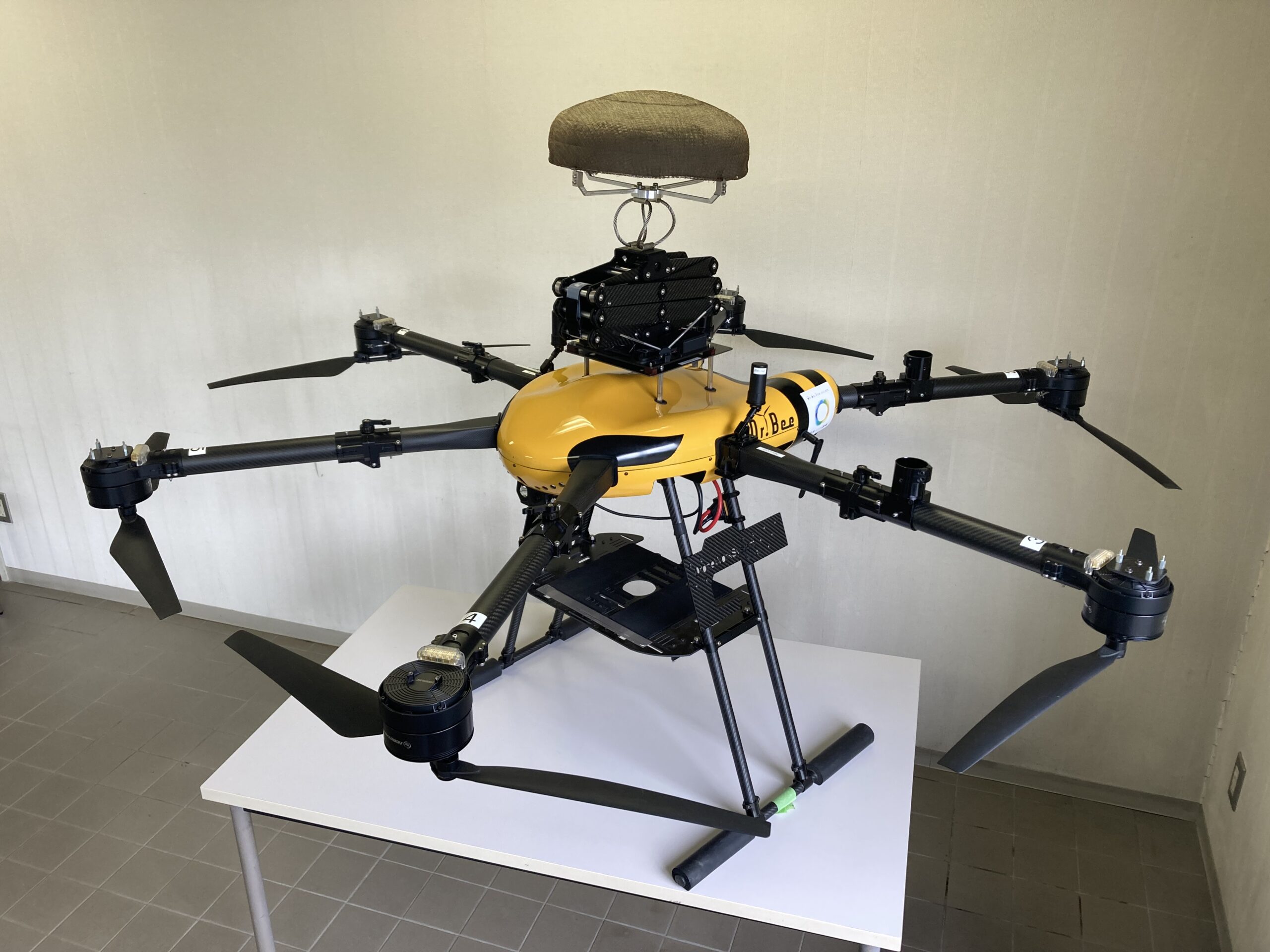従来はロープワークやクレーンを使って行っていた雷対策用接地線の導通点検を、より安全にスピーディかつ低コストに点検するためを2019年に導通点検用ドローンの開発を開始し2021年に国内特許を取得。浜通り企業の協力を得て2024年3月に実用型導通点検用ドローンDr. Beeが完成しました。2024年4月の事業化開始以降、2025年9月までに100基以上の陸上風車の点検を実施しています。また、2025年8月に洋上風車の導通点検にも成功しました。