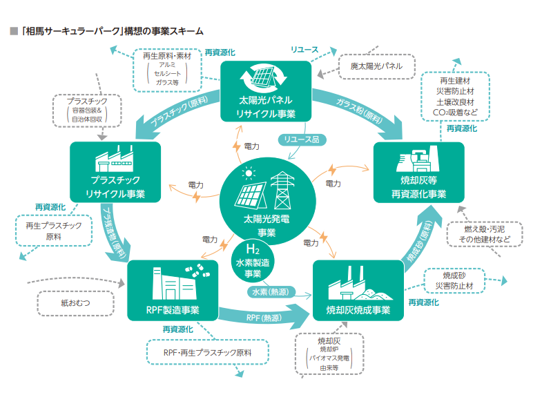 地方型サーキュラーエコノミーパートナーシップを展開した居る中で相馬サーキュラーパークでの取り組み事例。動脈、静脈、自治体、大学連携によるリサイクル、ごみ減量推進に向けた取り組みについて