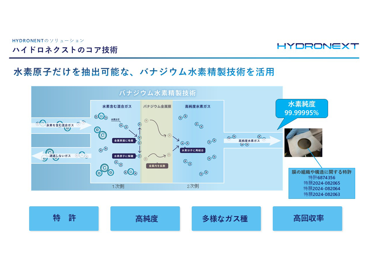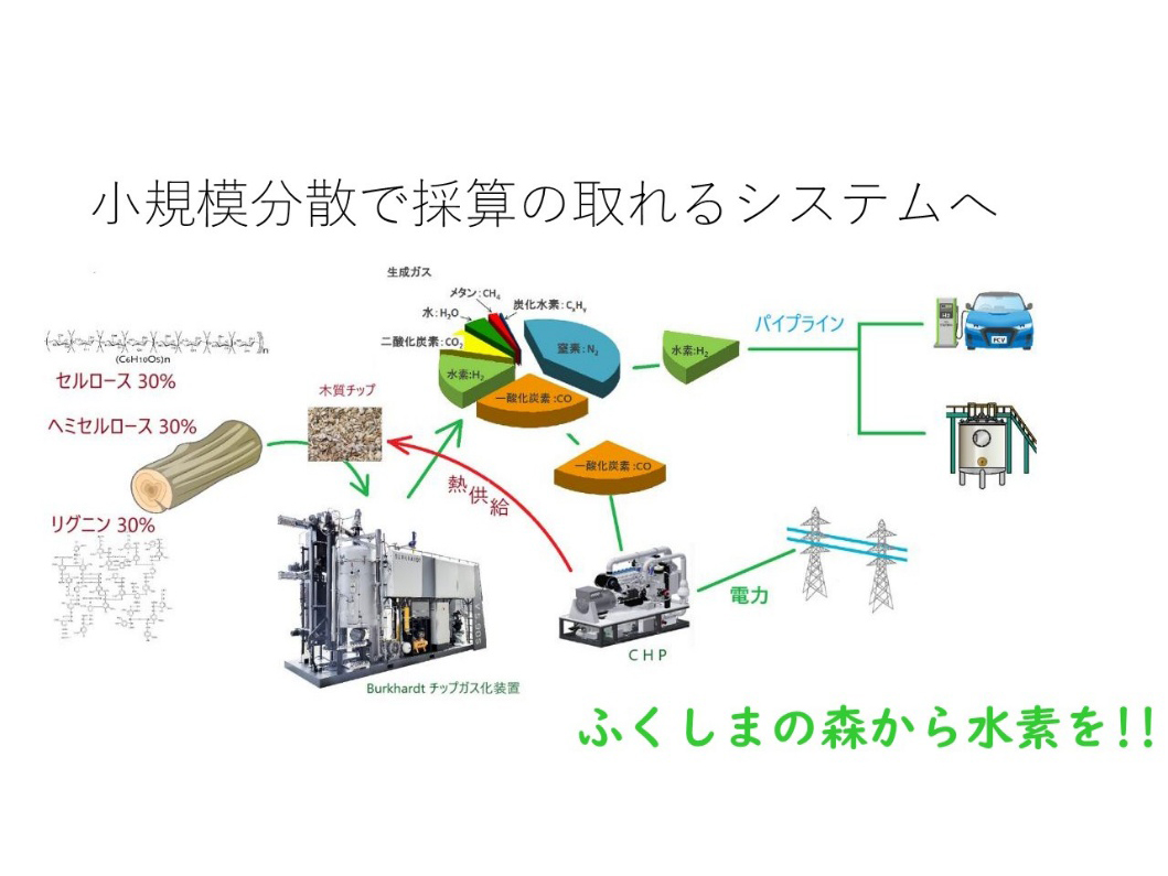 バイオマスガス化熱電併給システム(Wood Gas Generation system)からバイオマス由来の水素を分離する技術開発を基に、水素とプロパンガス(LPガス)と混焼(混合)させることで、