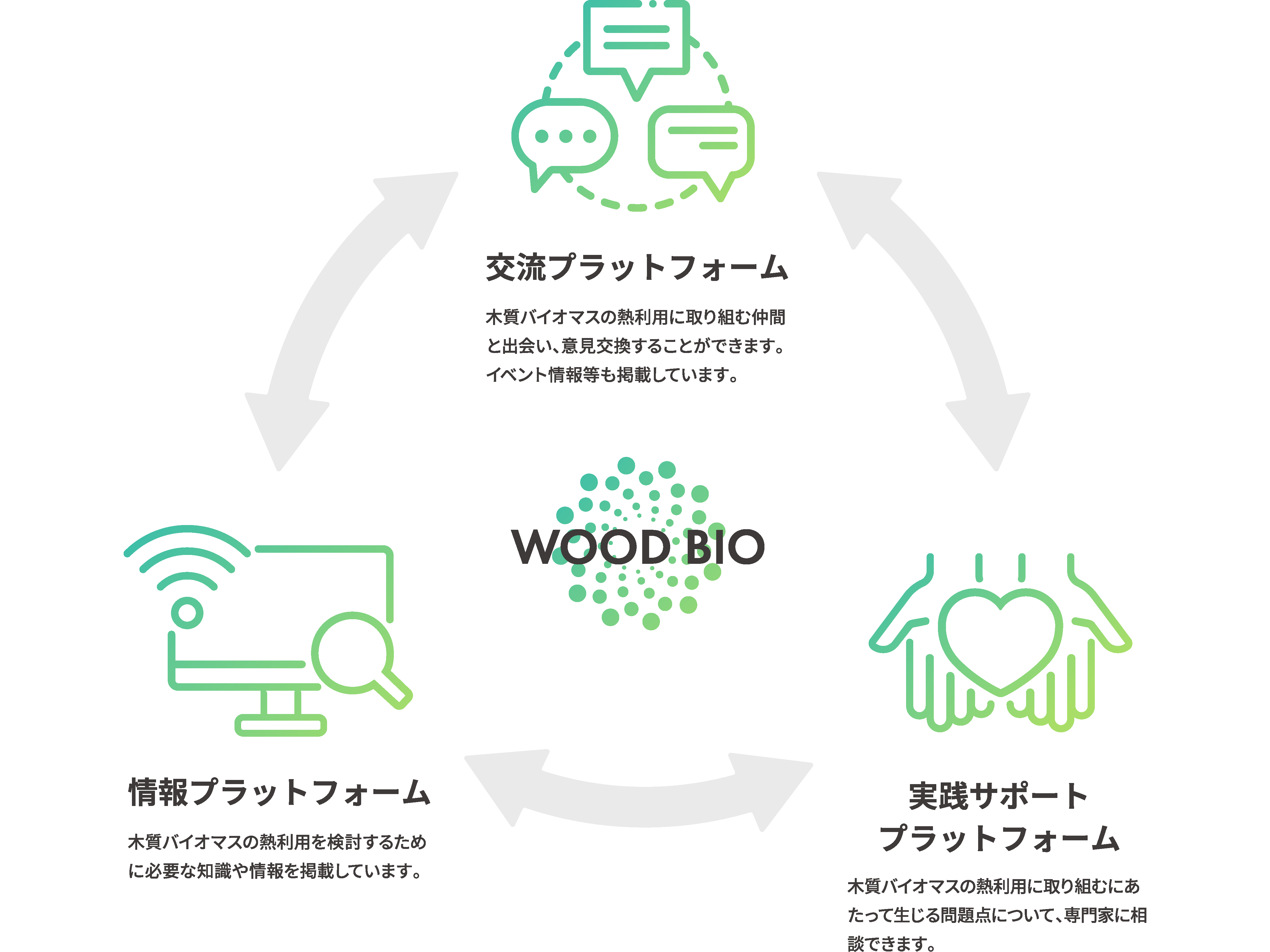 プラットフォーム「WOODBIO」を通じて、木質バイオマスの熱利用をサポート!