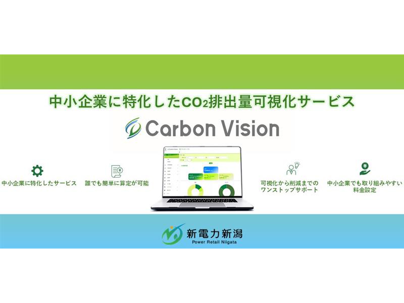 新電力新潟では中小企業のCO2排出量可視化から削減までを総合的にサポートするクラウドサービス「Carbon Vision」を提供しています。