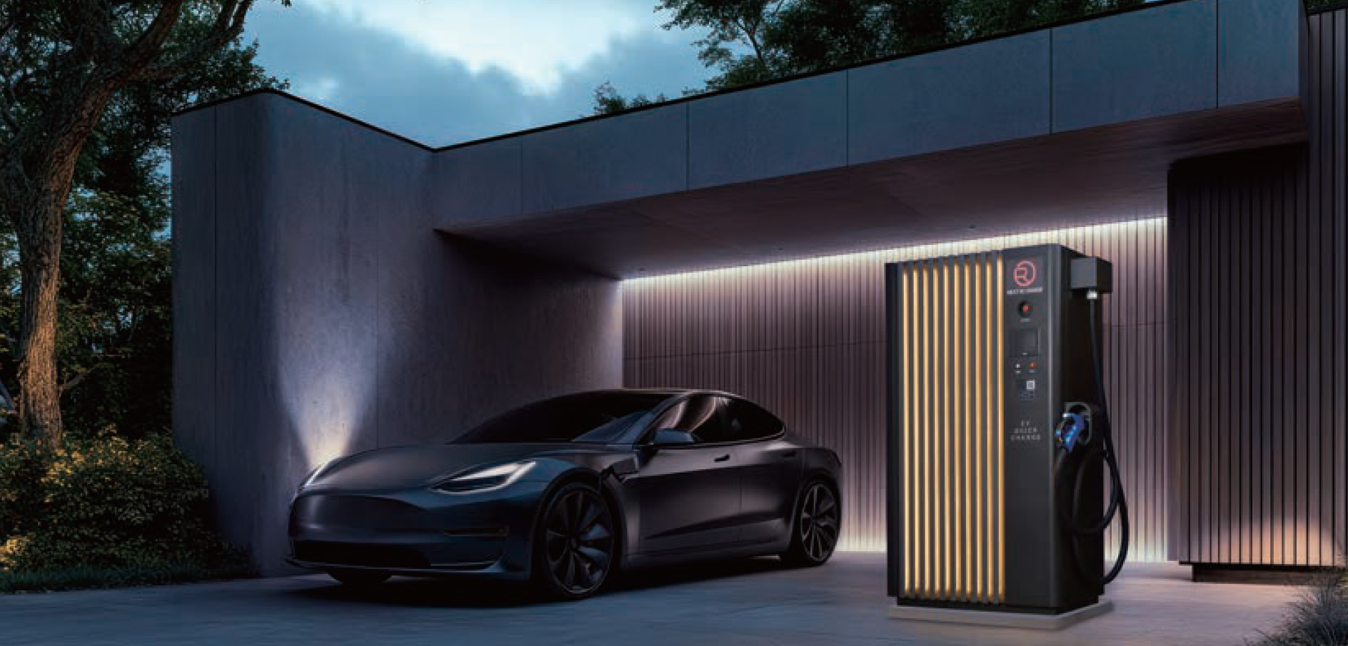 電気自動車の充電器を設置。弊社は受託開発をメインとしており、EV充電器を自社ブランドとして販売を計画されている企業様へODMにて、そのブランドにあった仕様、外観の充電器を提供いたします。
